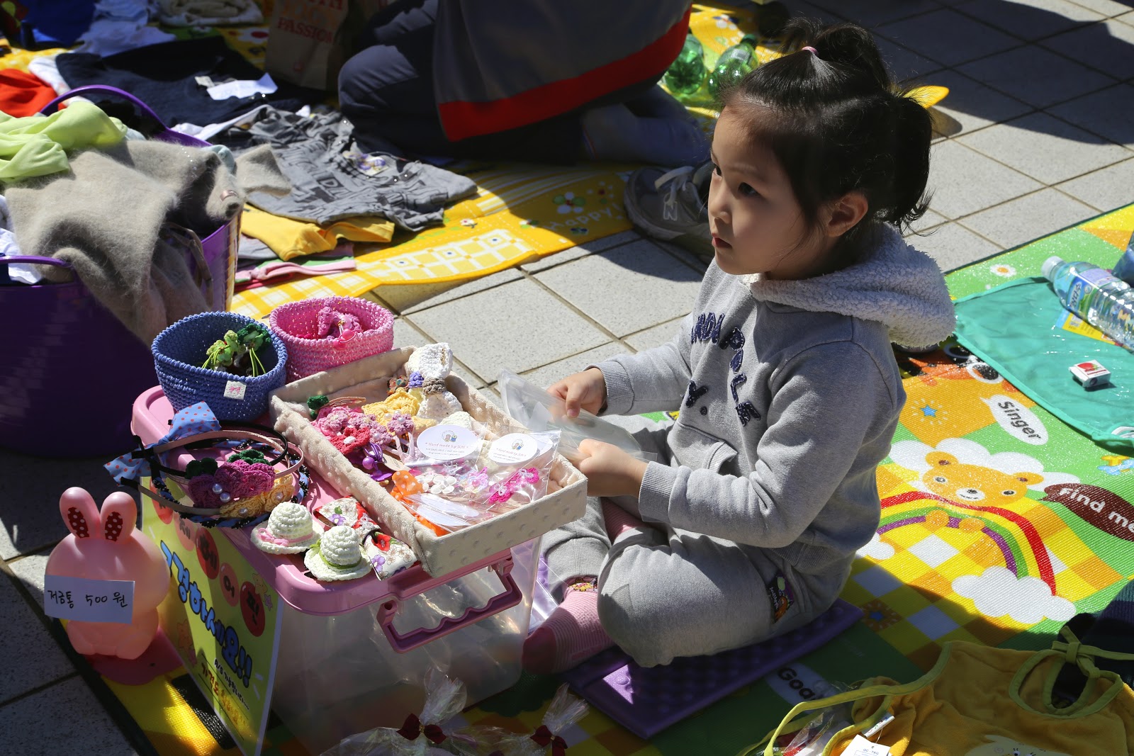 When we finally got to Home Plus, we saw that they were having a big flea market in front. There was mostly children clothes and toys.
