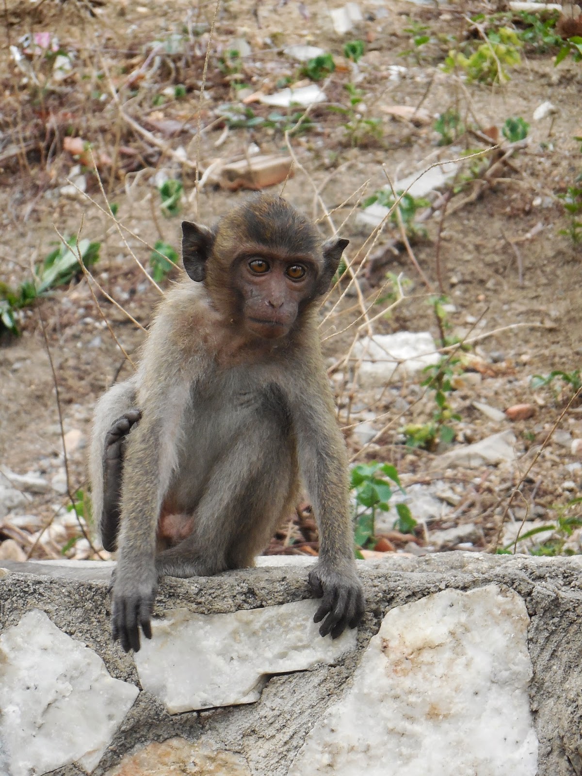 Monkey Beach is next to Monkey Mountain, which is literally a mountain covered in monkeys.  I researched it and I believe they are crab-eating macaques.  They are not aggressive unless you aggravate them.